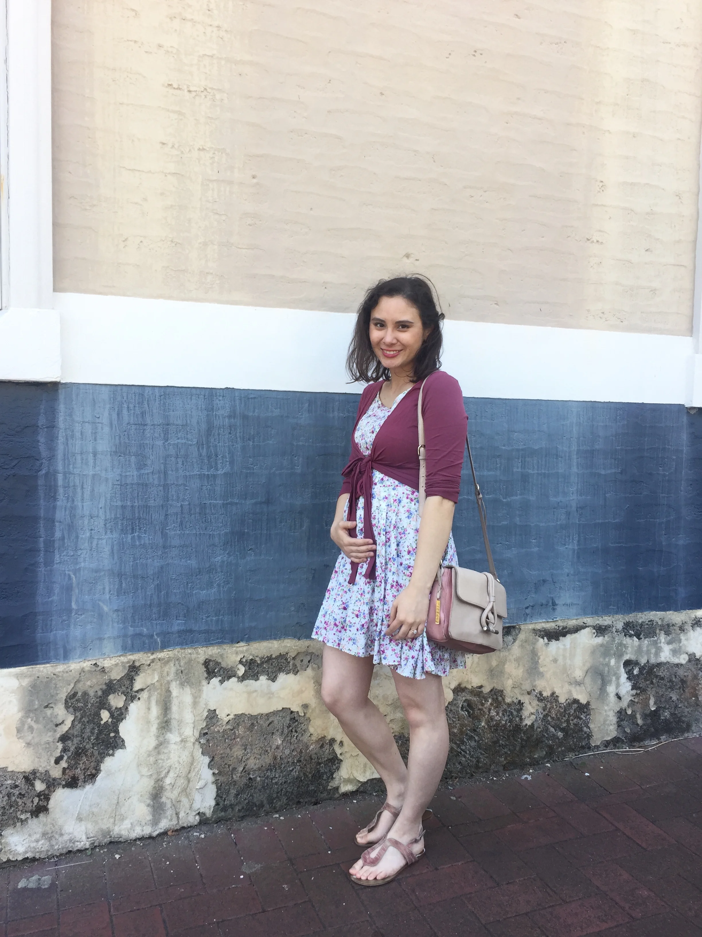 It was a slightly cooler day, so I paired it with this cute little top that I’ve had for years from Metalicus. It can be worn wrapped around (like the “crossovers” I used to wear to ballet) or tied at the front and I like how it gives more of an empire-waist look to the dress, nipping in under the bust. I feel like that is particularly flattering on the bump and I’m sure I’ll be getting a lot of use from this piece over the next few months as it’s super stretchy and can add a little something extra to an outfit!